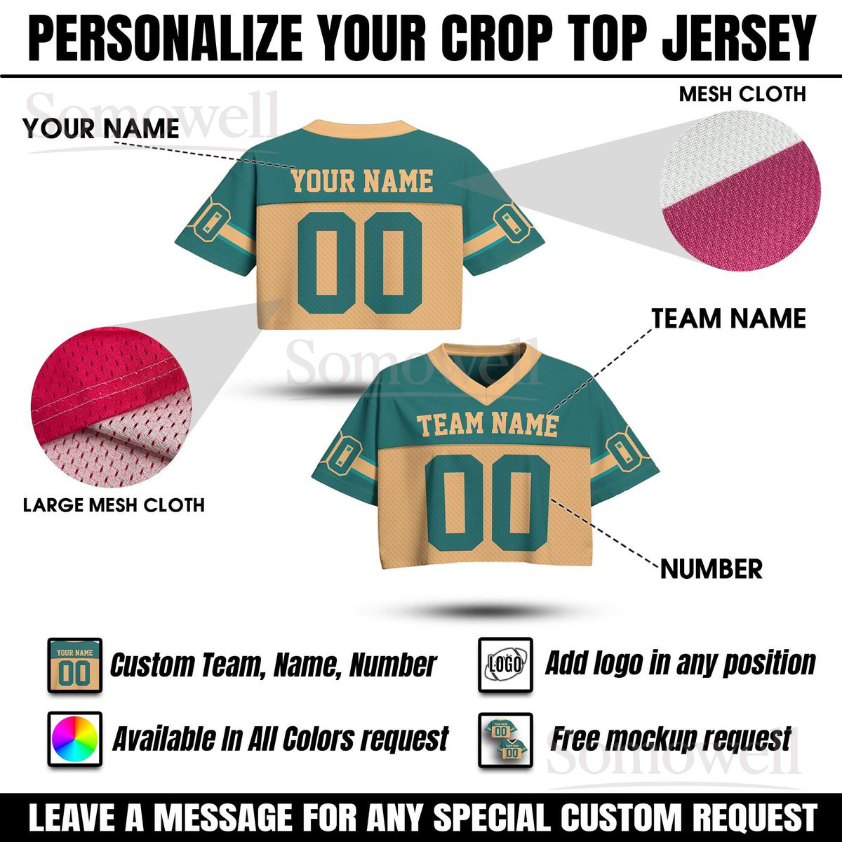 Personalized Women39s Crop Top Football Jersey Custom Team Name Number Logo Women Crop Tee Multi Color Edition