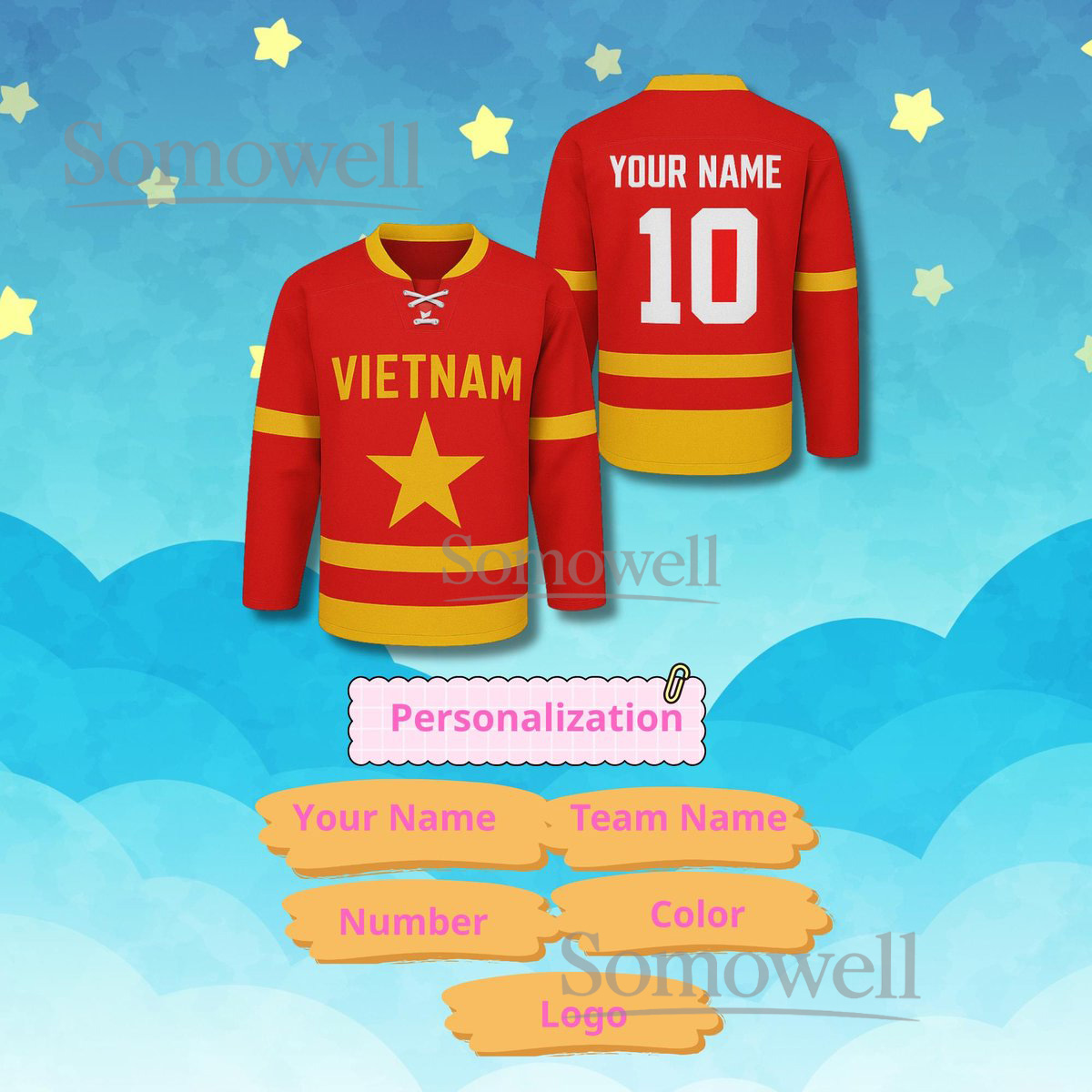 Personalized Vietnam Hockey Jersey Shirt Custom Name National Pride Gift