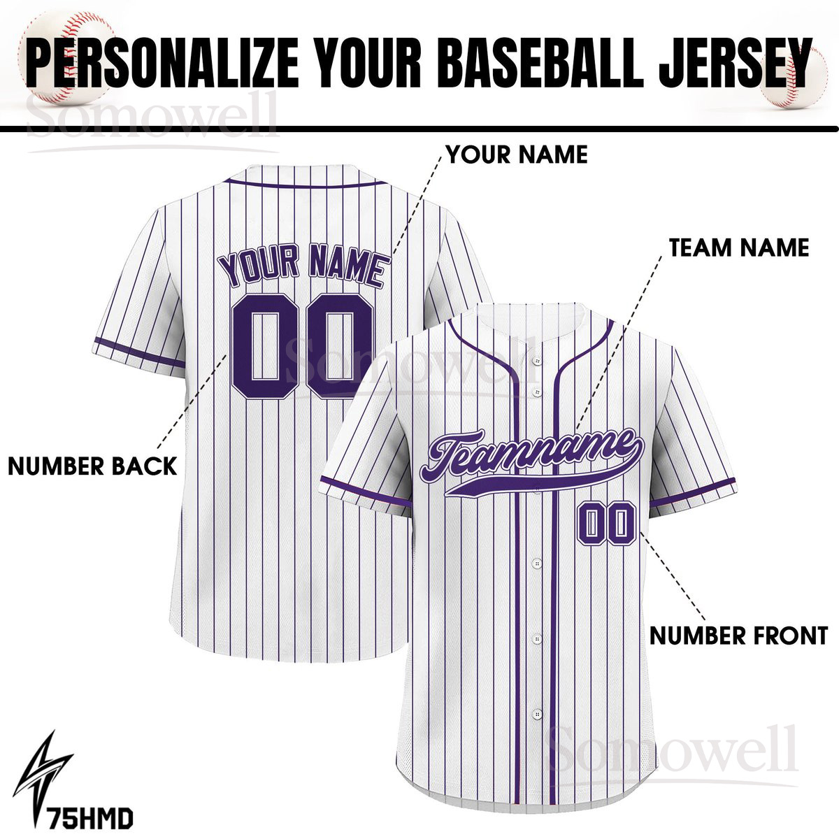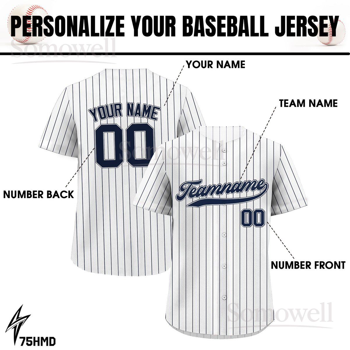 Pinstripe Custom Baseball Jersey with Teamname Name Number Logo Classic Striped Teamwear Multi Color Edition