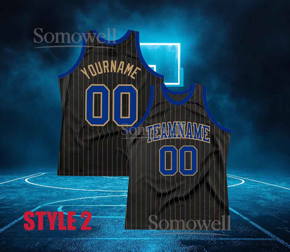 Custom Basketball Jersey Black Blue Pinstripe Personalized Team Name Number Sleeveless Top