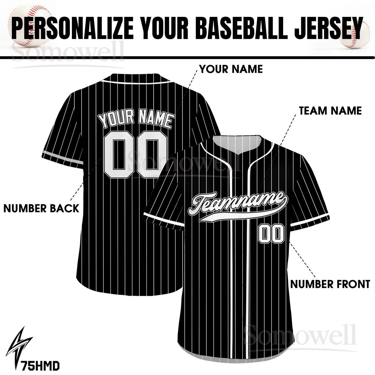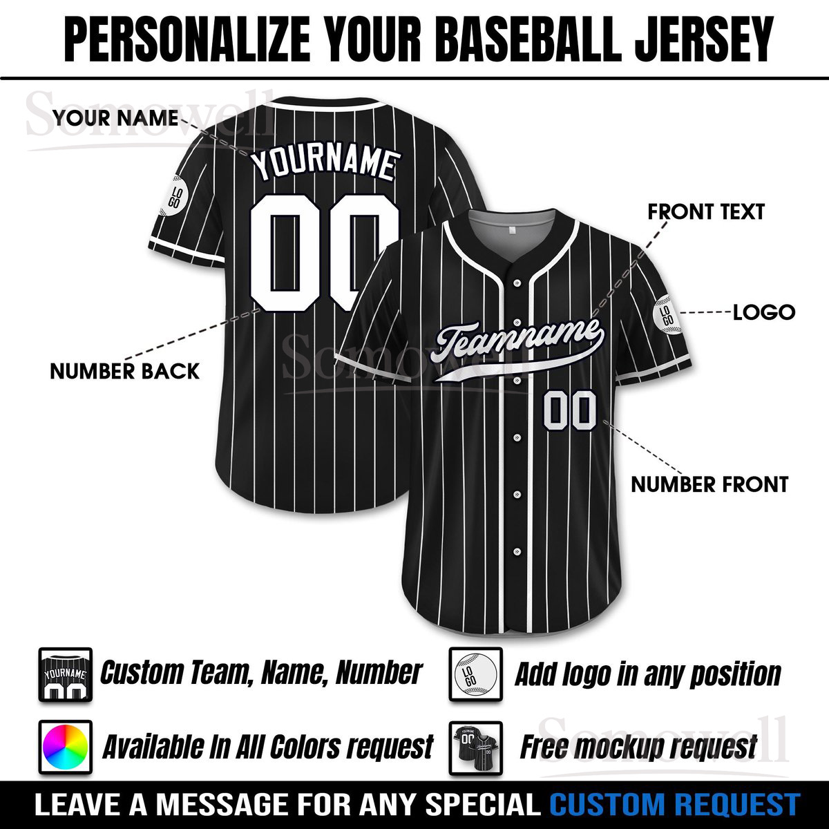 Printed Black White Pinstripe Custom Baseball Jersey Personalized Team Name and Number Multi Color Edition