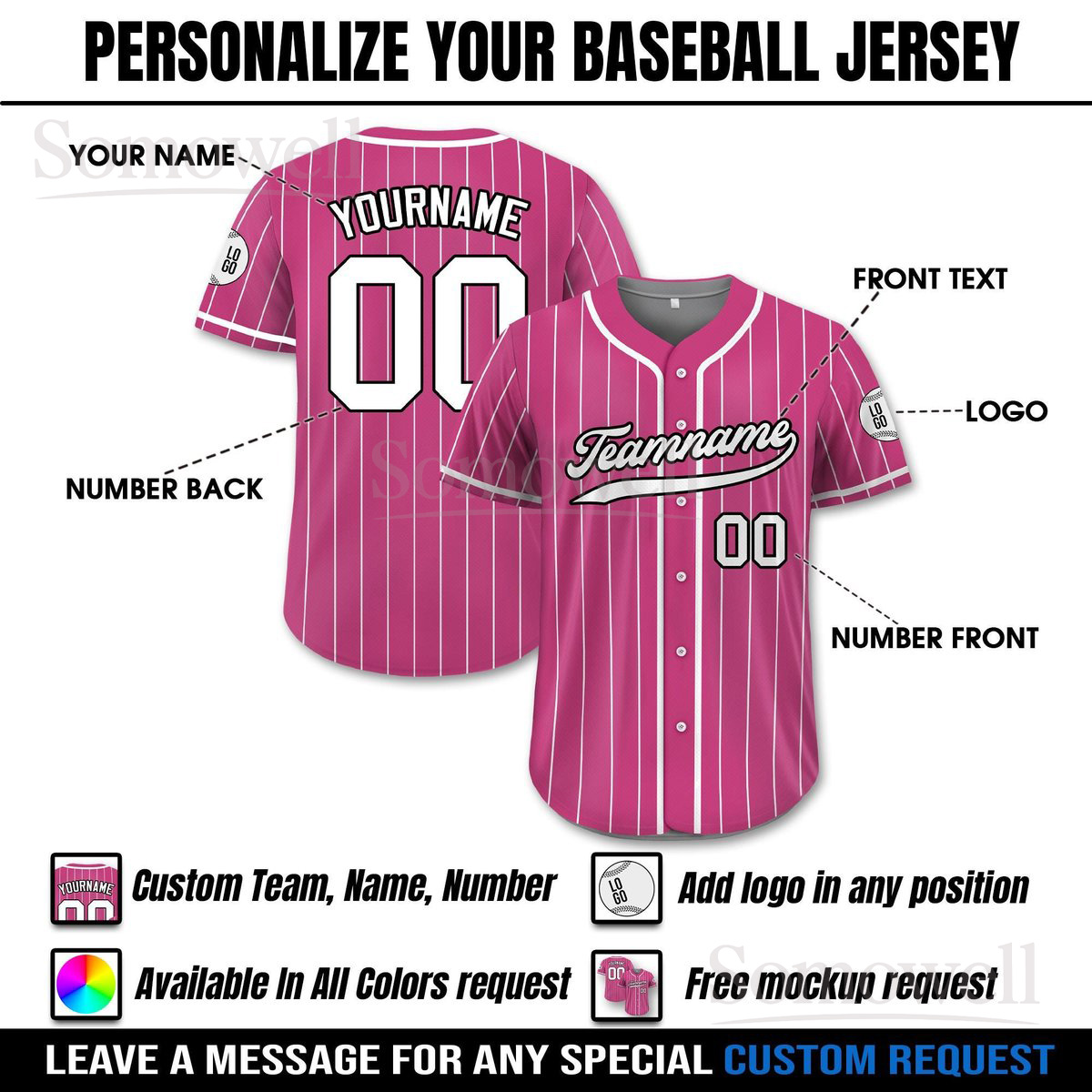 Printed Pink White Custom Baseball Jersey Personalized Team Name Number Cute Aesthetic Style for Women Youth Multi Color Edition