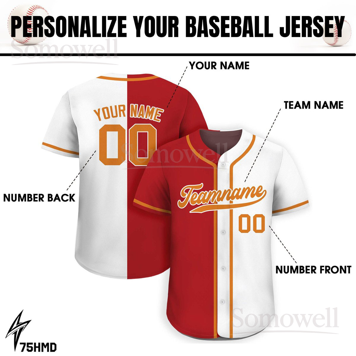 Printed Red White Custom Baseball Jersey with Teamname Name Number Personalized Teamwear Multi Color Edition
