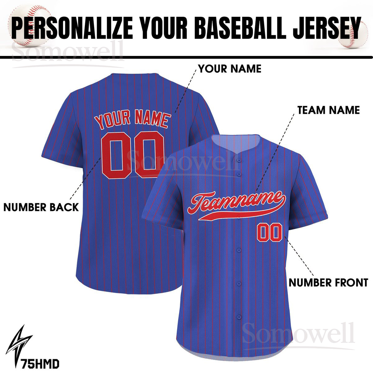 Printed Royal Blue Red Pinstripe Custom Baseball Jersey Many Colors with Teamname Name Number