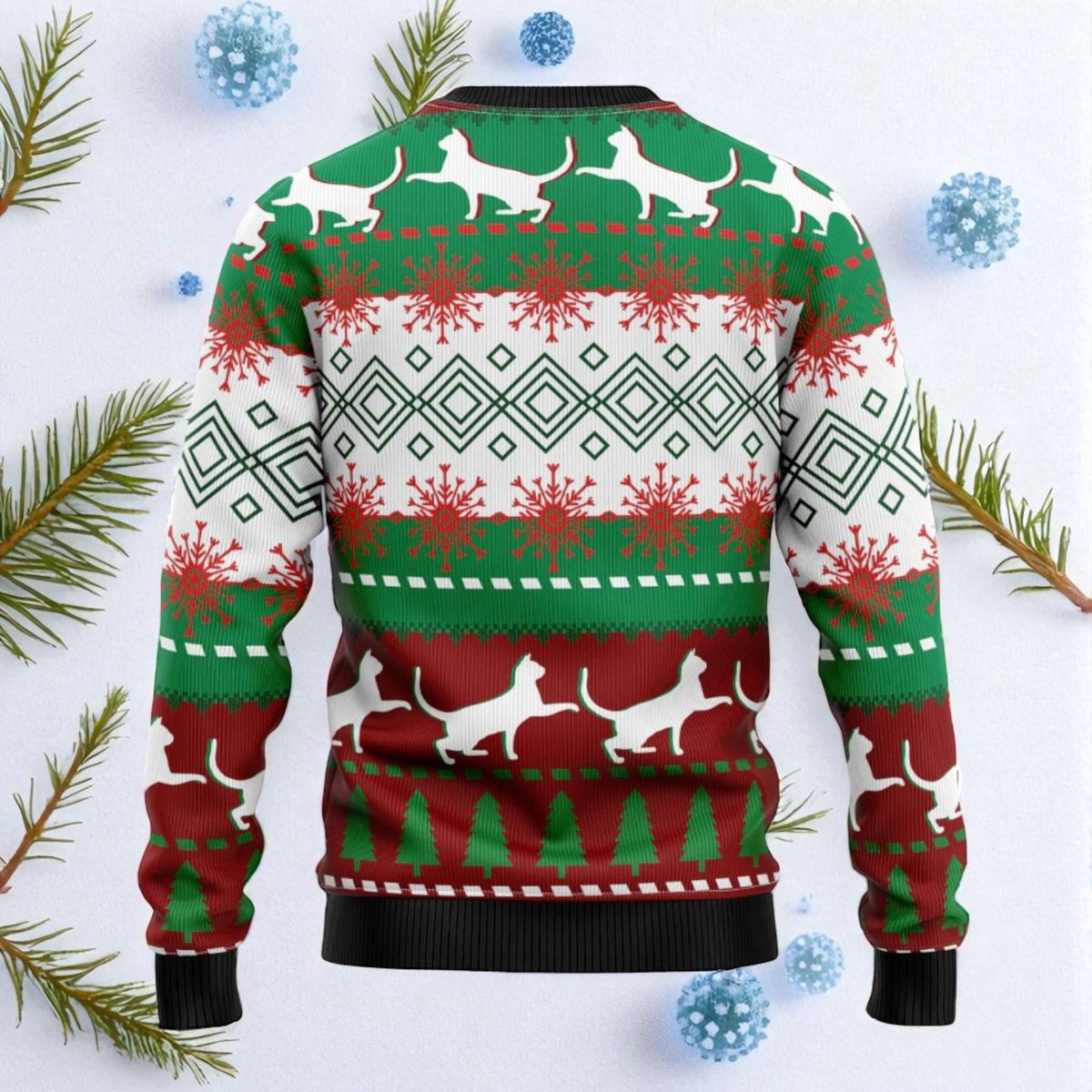Black Cat Green HO HO Christmas Ugly Sweater Funny Holiday Pullover Gift