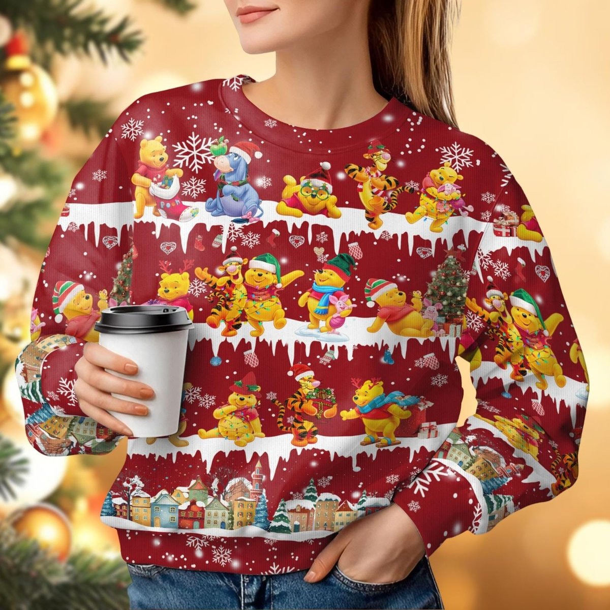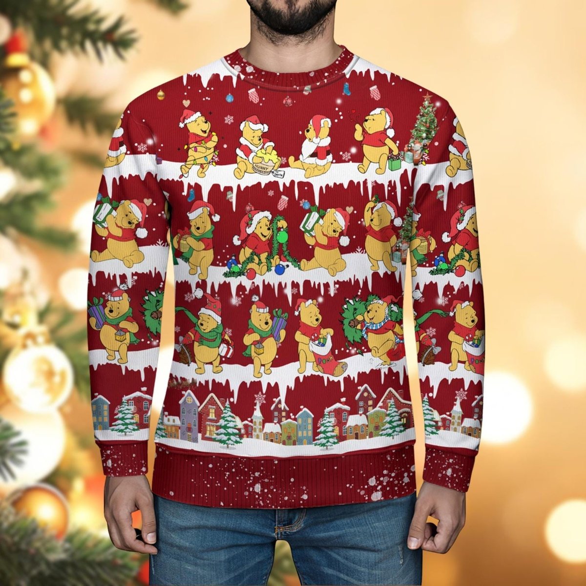 Winnie The Pooh Red Ugly Christmas Sweater Cute Holiday Pullover Gift Ideav