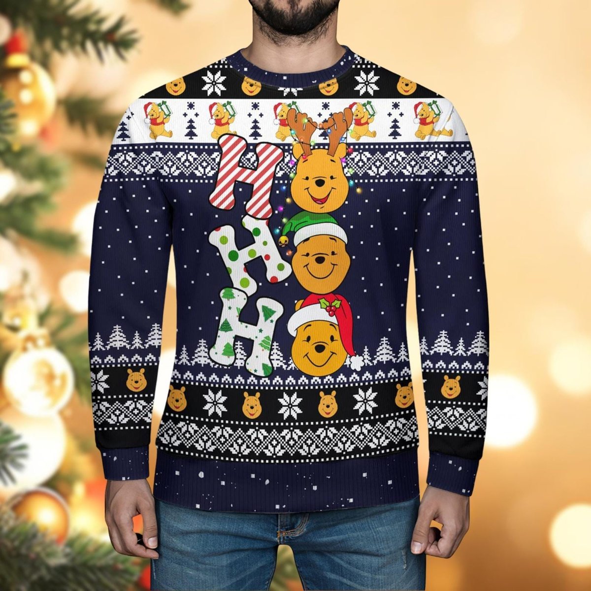 Winnie The Pooh Ho Ho Ho Custom Name Ugly Christmas Sweater Blue Holiday Knit