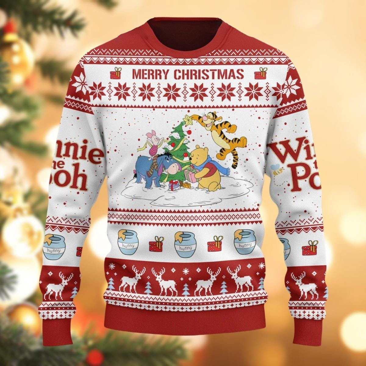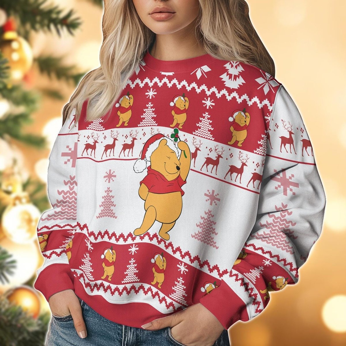 Winnie The Pooh Red White Ugly Christmas Sweater Cute Holiday Pullover Gift
