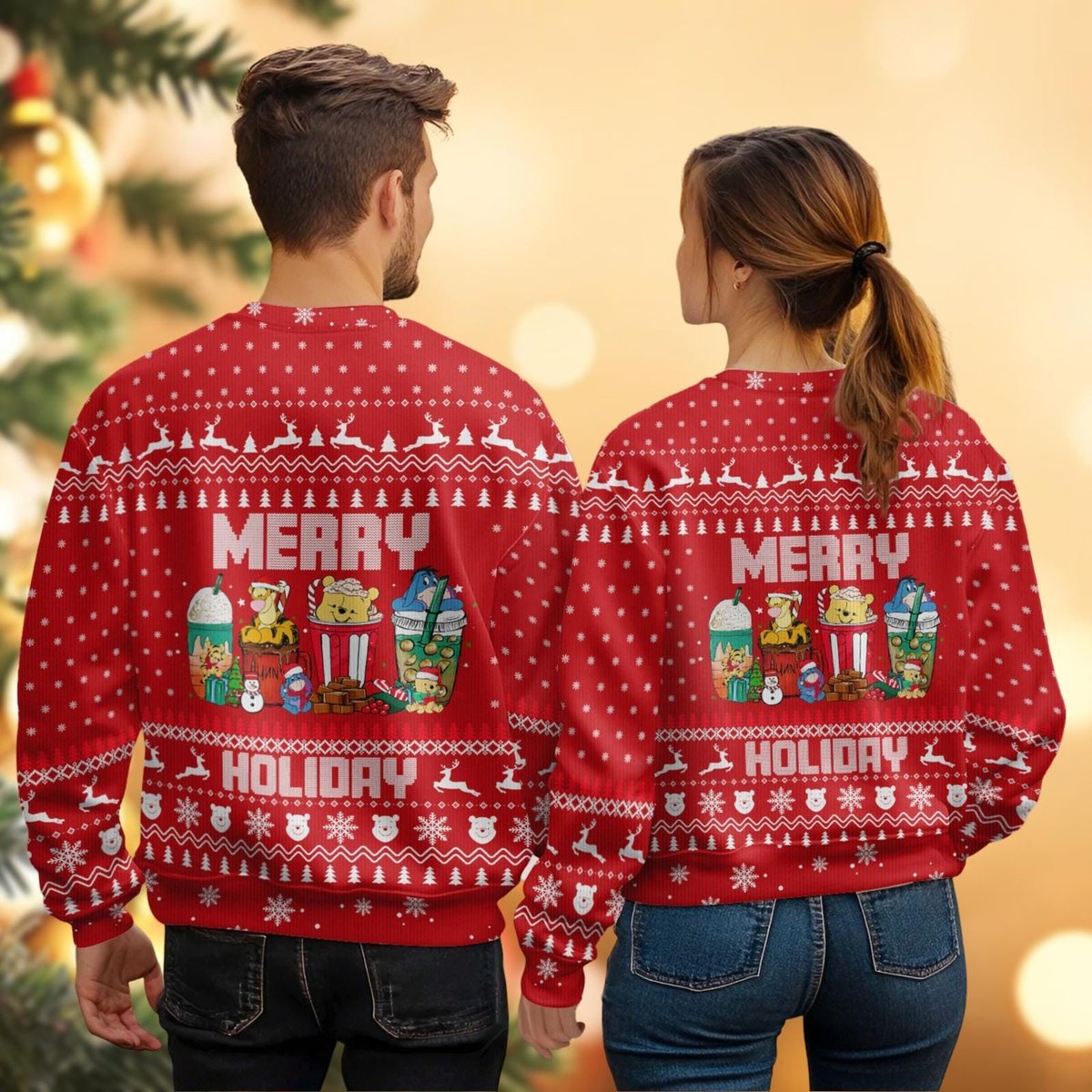 Winnie The Pooh Red Holiday Drinks Ugly Christmas Sweater Funny Knit Pullover Gift