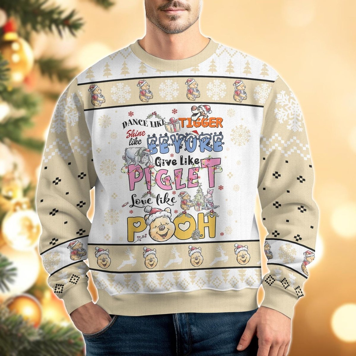 Winnie The Pooh Quote Beige Ugly Christmas Sweater Funny Holiday Knit Pullover Gift