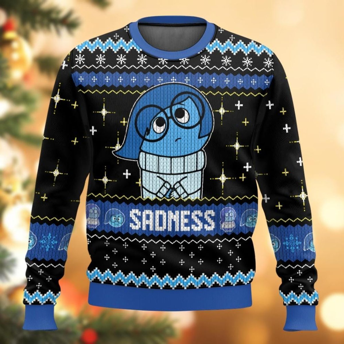 Blue Sad Character Inside Out Ugly Christmas Sweater Funny Holiday Pullover Gift