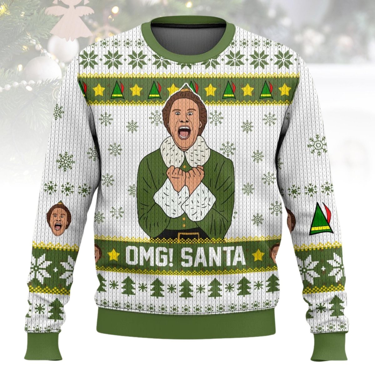 Buddy The Elf OMG Santa Ugly Christmas Sweater Funny Movie Holiday Knit Pullover Gift