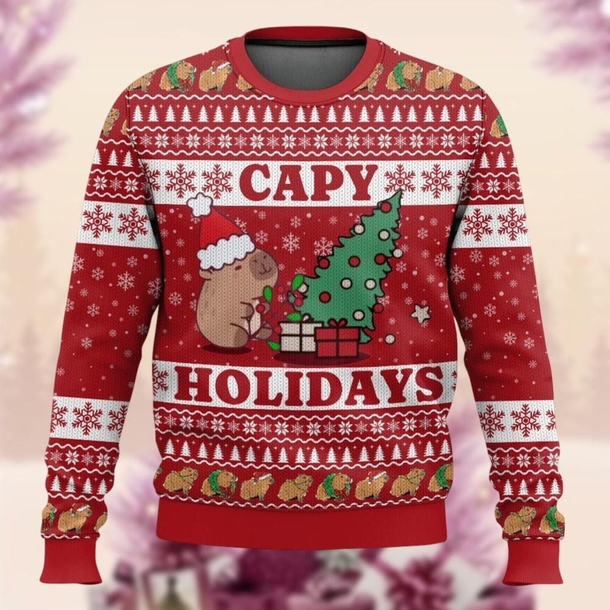 Capy Holidays Red Ugly Christmas Sweater Cute Capybara Tree Gifts Holiday Knit Jumper