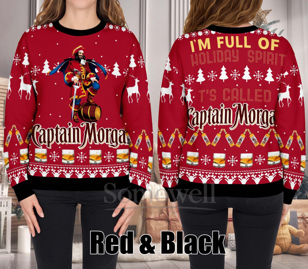 Captain Morgan Ugly Christmas Sweater Funny Rum Lover Holiday Knit Jumper Gift