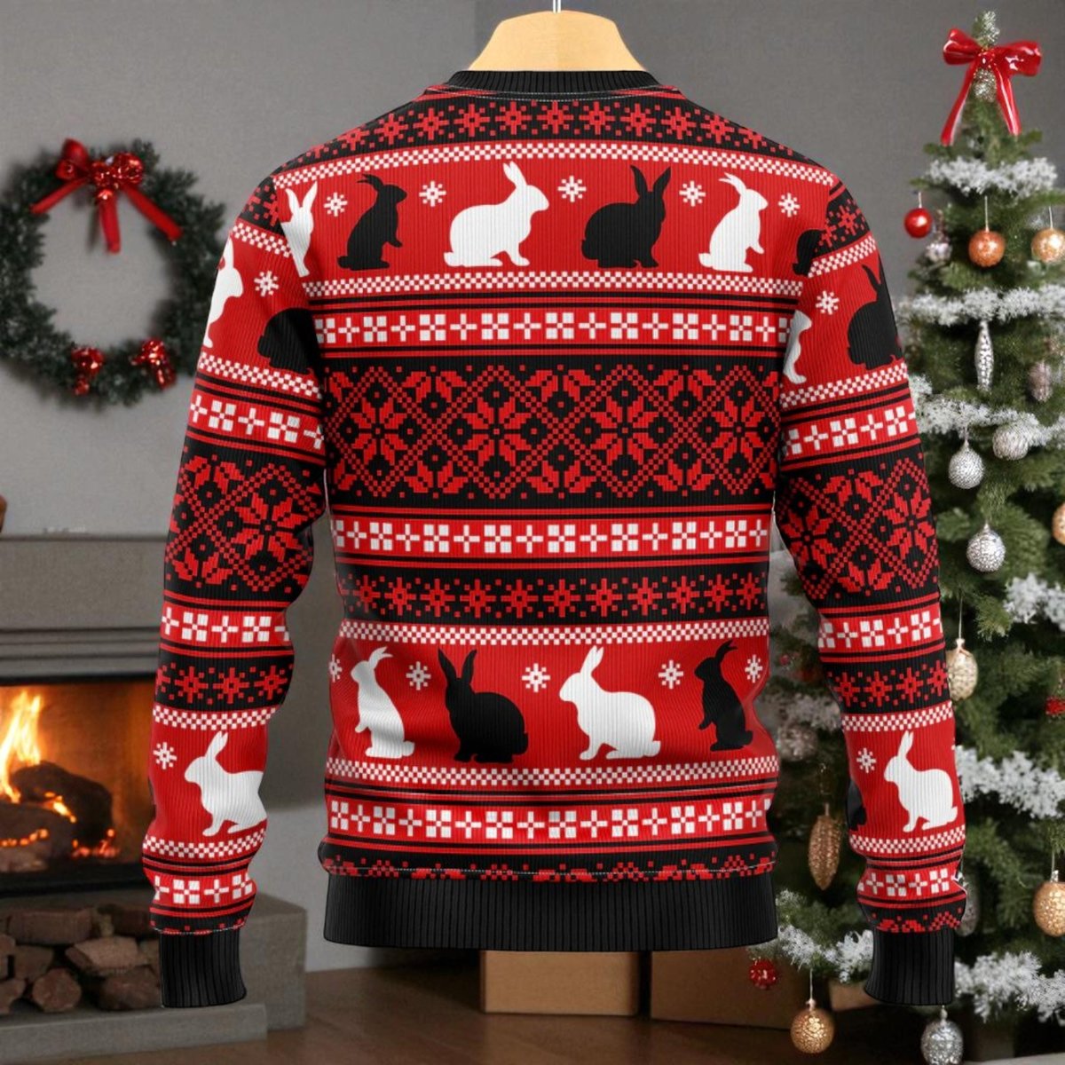Bunny Tree Black Ugly Christmas Sweater Cute Rabbit Holiday Knit Jumper