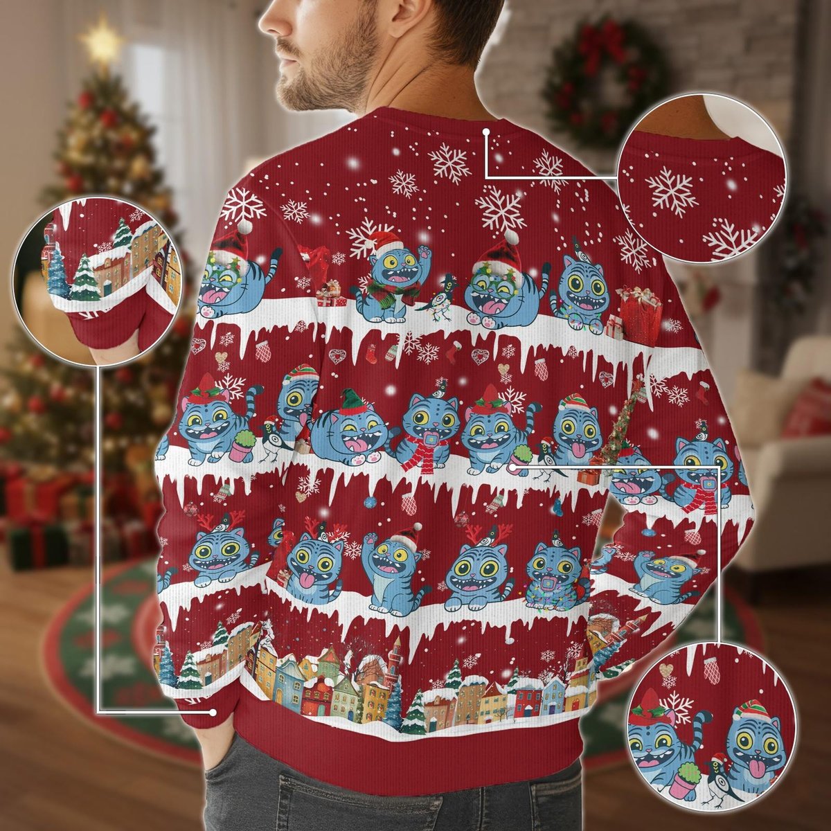 Cat Christmas Tree Ugly Sweater Funny Kitty Holiday Pullover Gift
