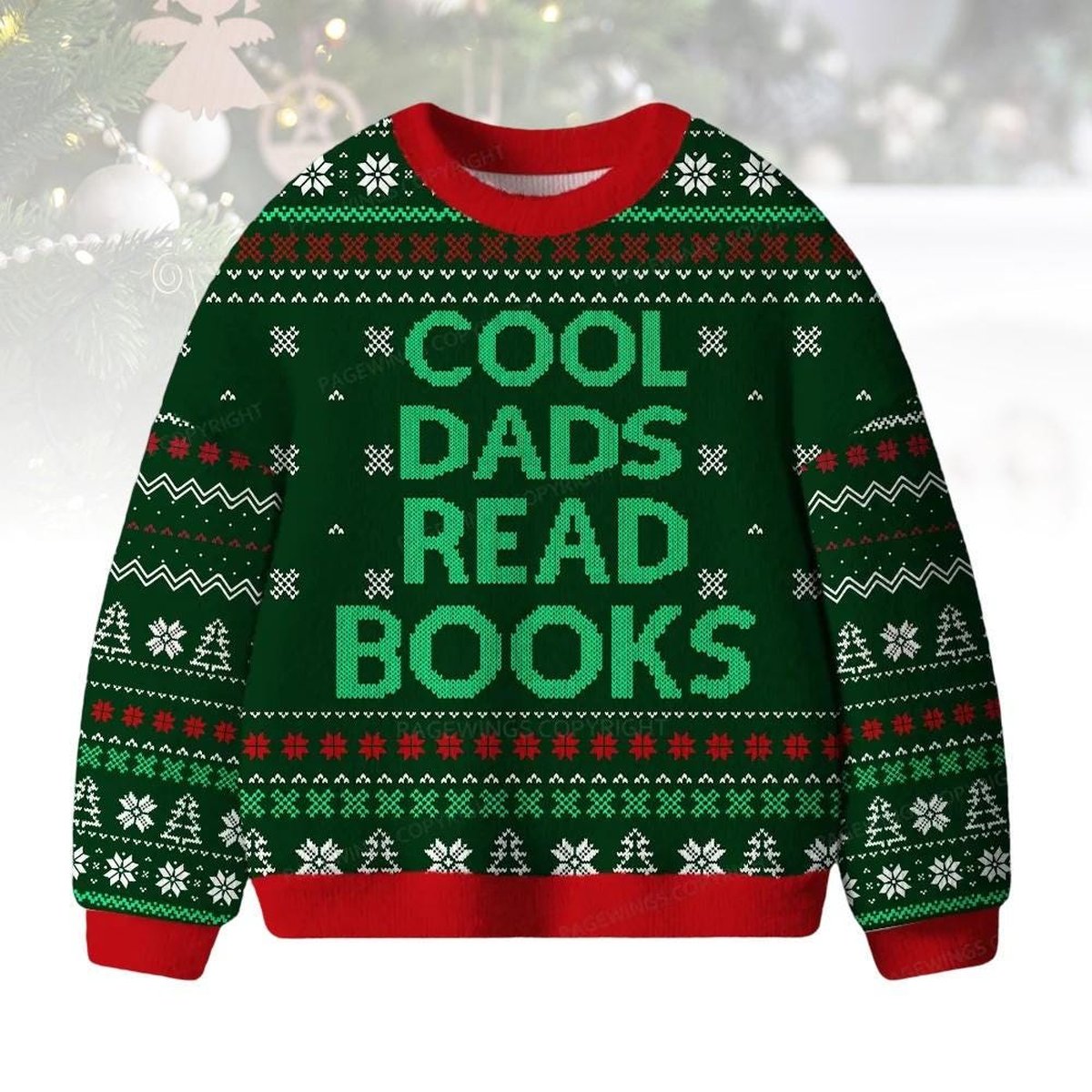 Cool Dads Read Books Christmas Green Ugly Sweater Funny Holiday Gift Knit Jumper