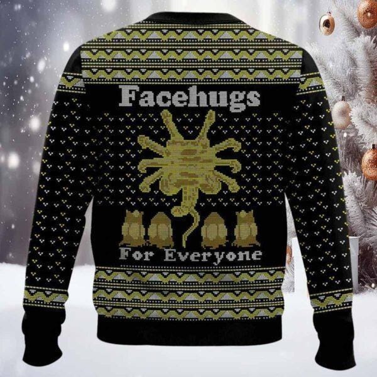 Alien Facehugger Free Hugs Ugly Christmas Sweater Funny Sci-Fi Horror Holiday Pullover Gift