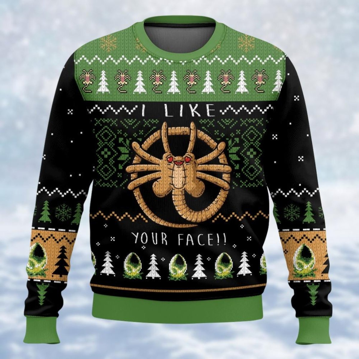 Alien Facehugger Green Christmas Ugly Sweater Sci Fi Monster Holiday Knit Jumper