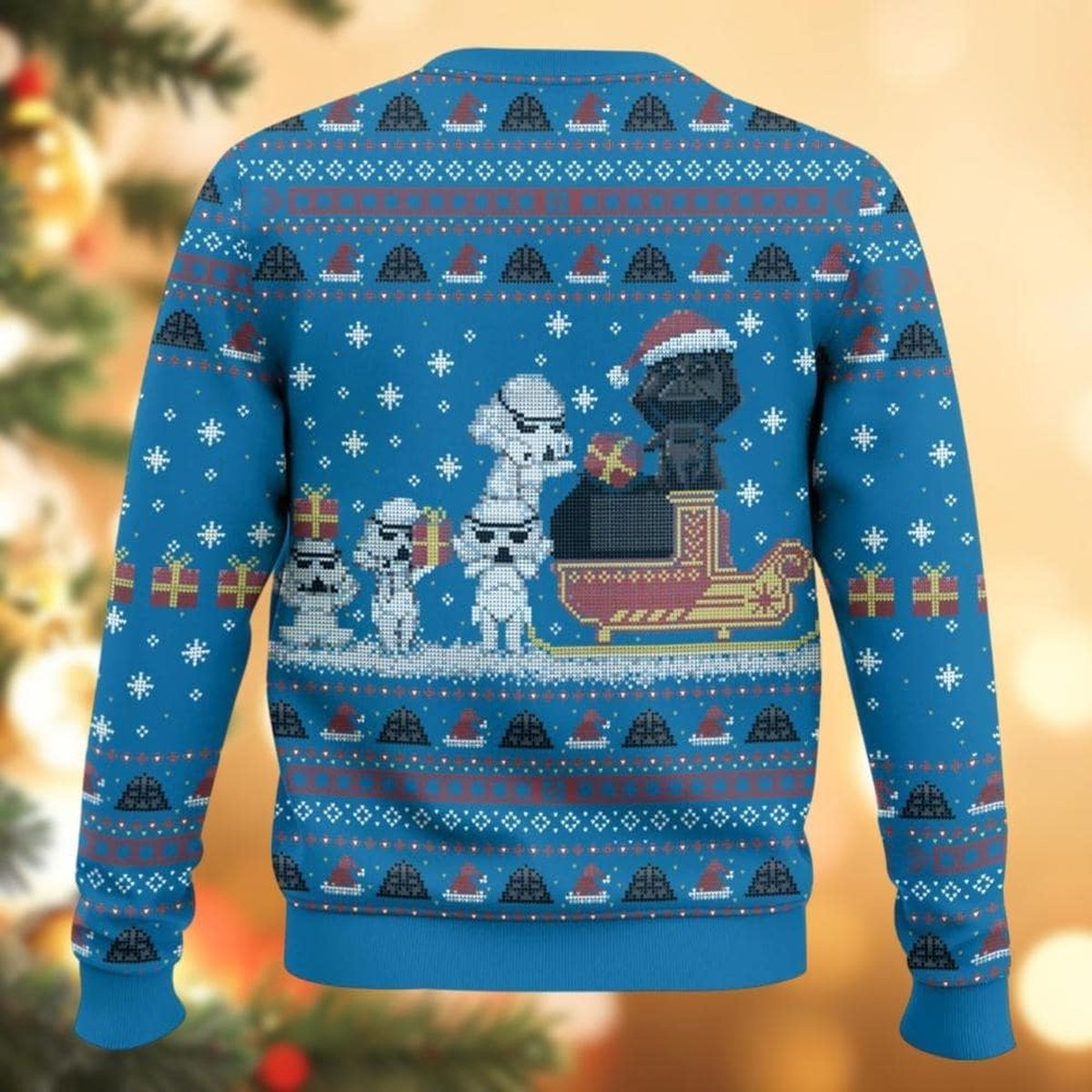 Darth Vader Stormtrooper Christmas Blue Ugly Sweater Galactic Sleigh Holiday Knit Jumper