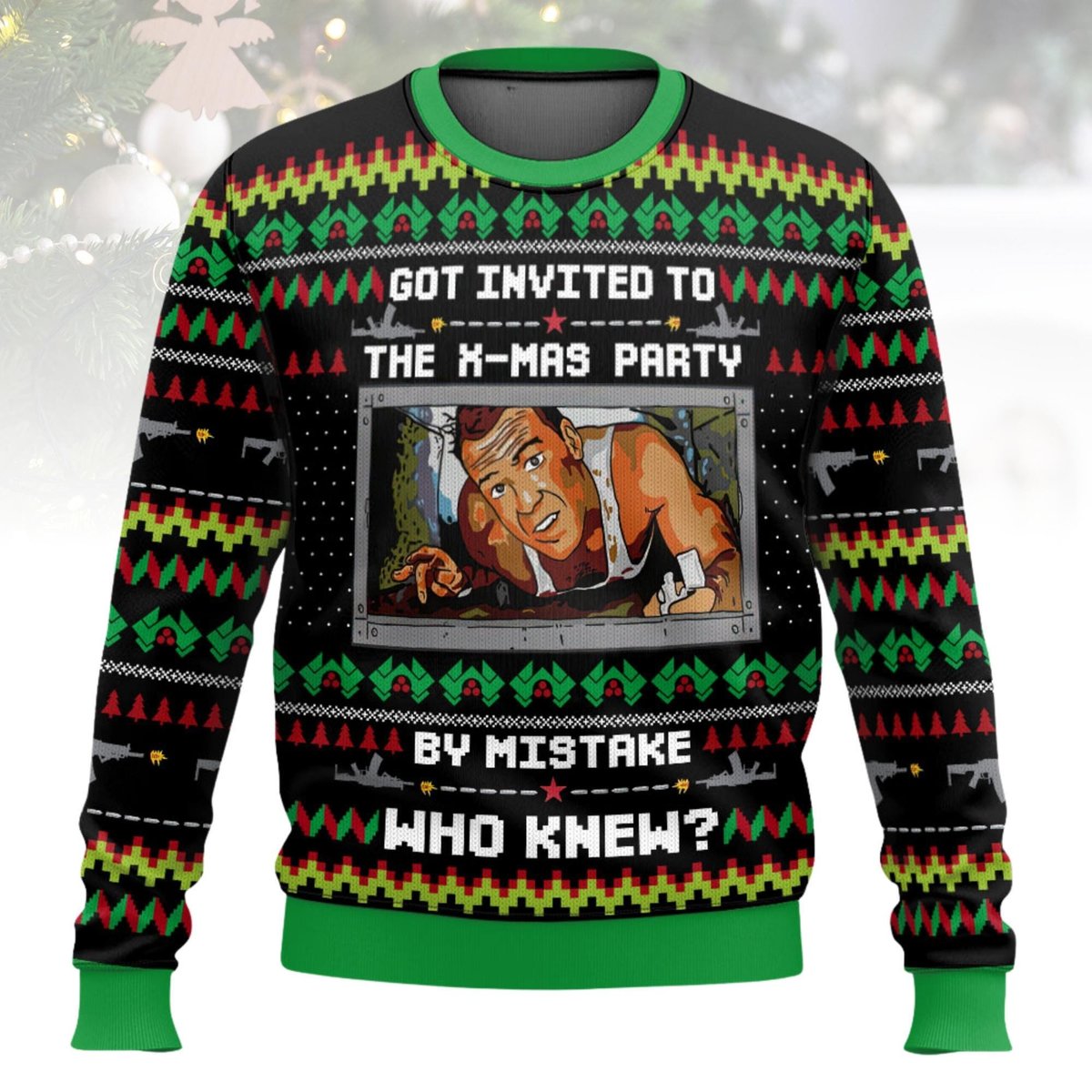 Die Hard X-Mas Party Black Ugly Sweater Funny Bruce Willis Quote Holiday Knit Jumper