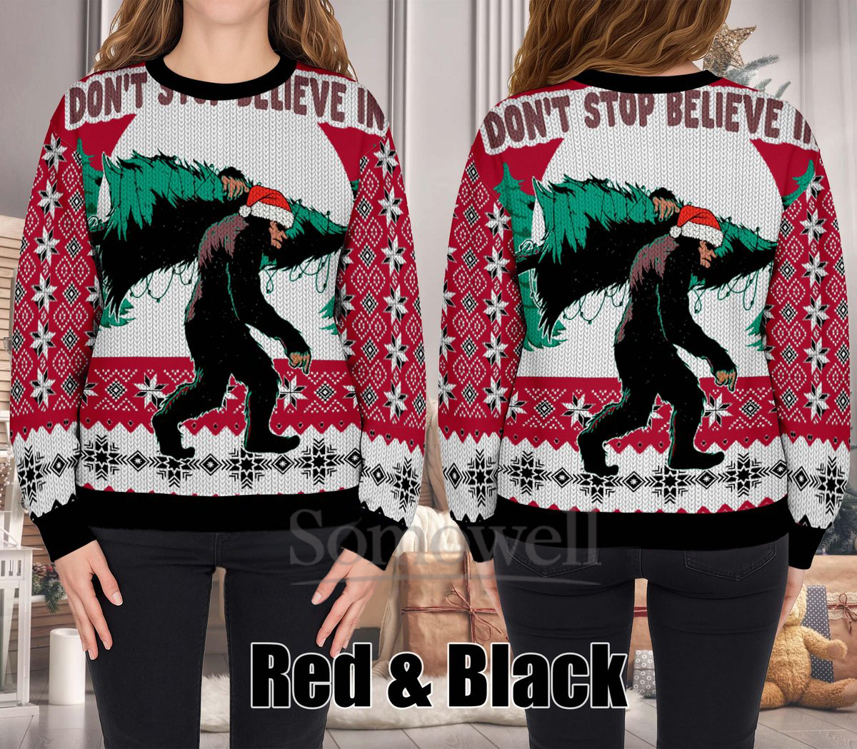 Don39t Stop BeLieve In Bigfoot Ugly Christmas Sweater Holiday Knit Gift