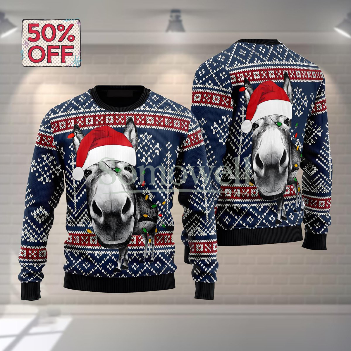 Donkey Santa Hat Navy Ugly Christmas Sweater Funny Farm Animal Holiday Knit Jumper