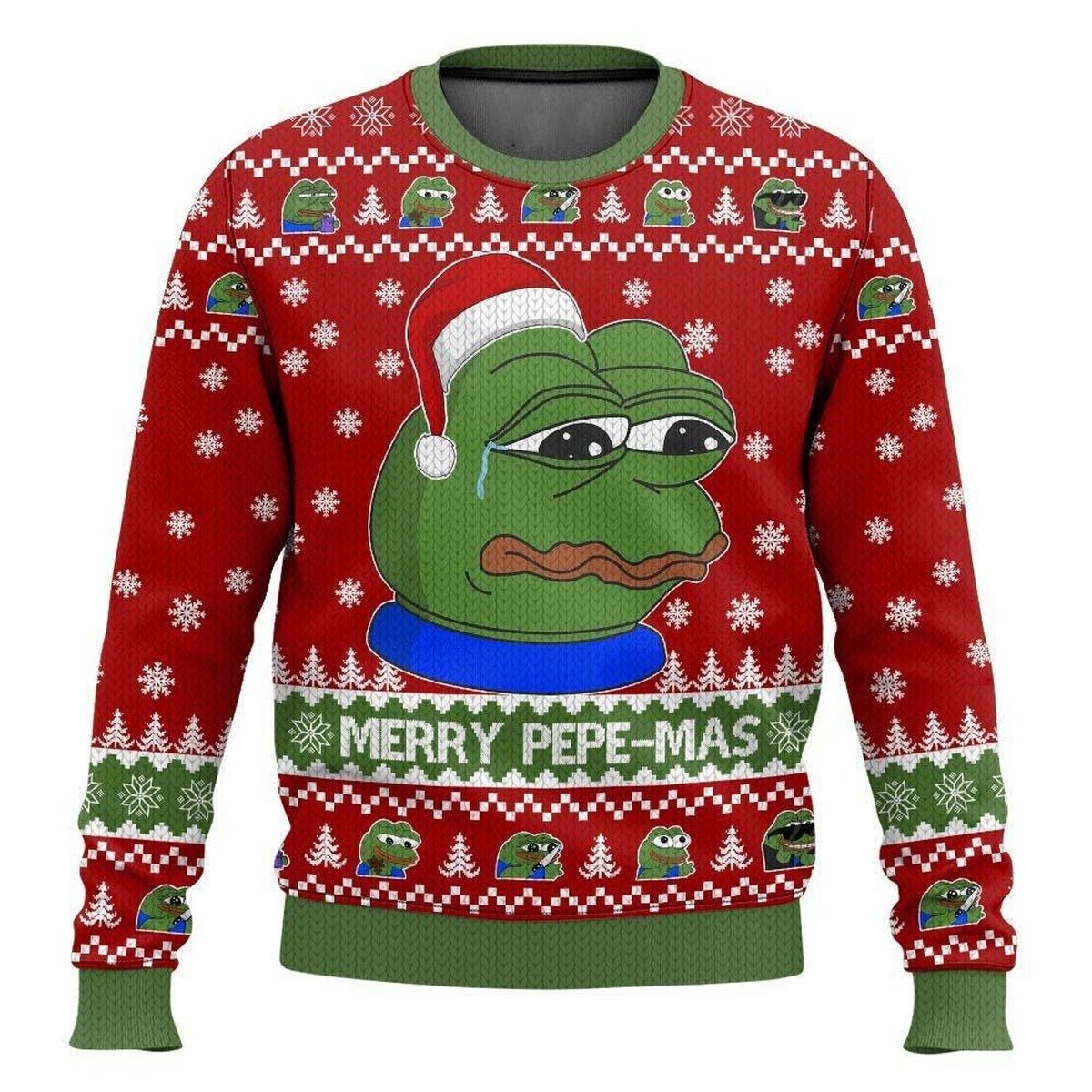 Merry Pepemas Pepe the Frog Meme Ugly Christmas Sweater Funny Internet Meme Holiday Knit Jumper