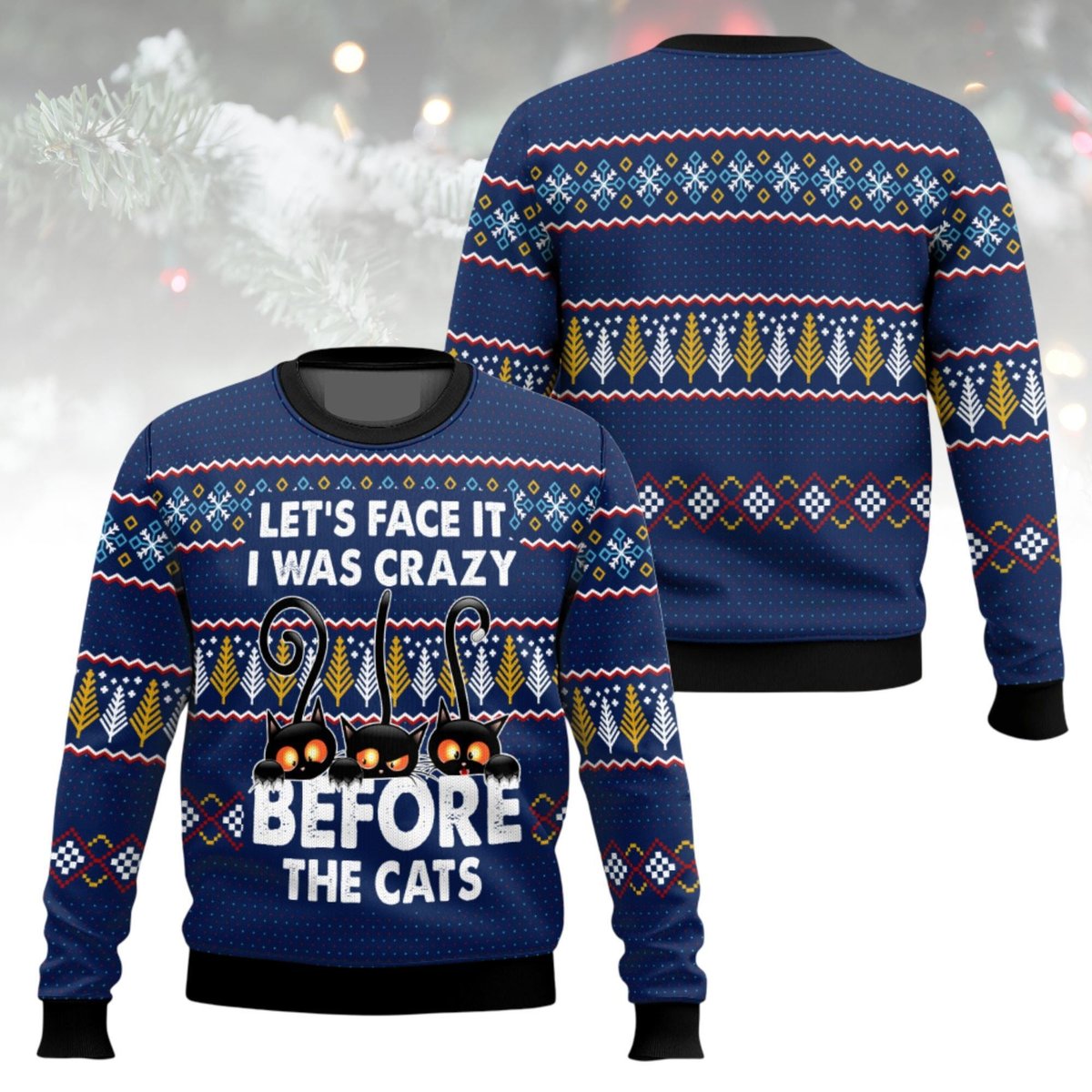 Let’s Face It I Was Crazy Before The Cats Ugly Christmas Sweater Funny Cat Lover Holiday Knit Jumper