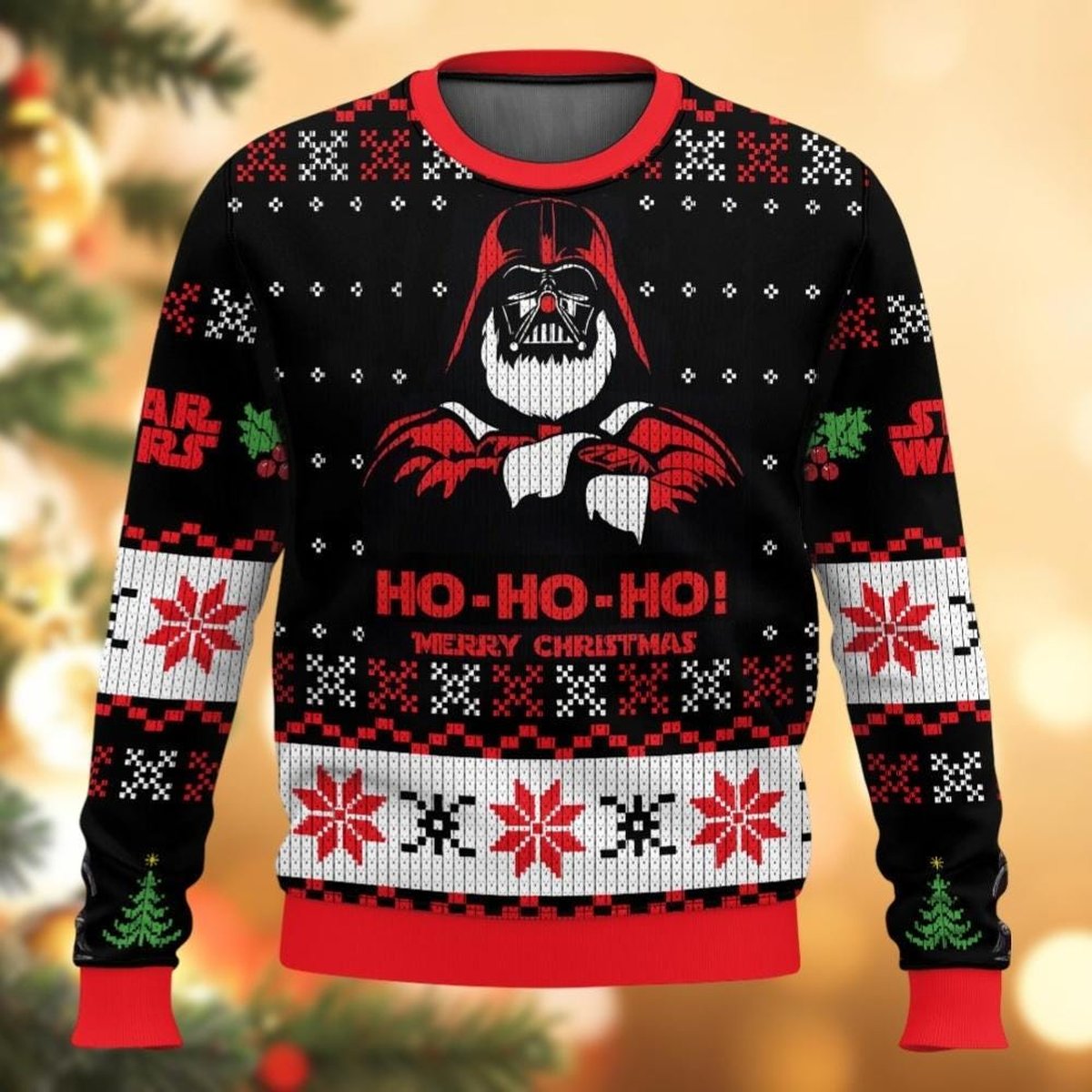 Ho Ho Ho Darth Helmet Ugly Christmas Sweater Black Red Funny Holiday Pullover