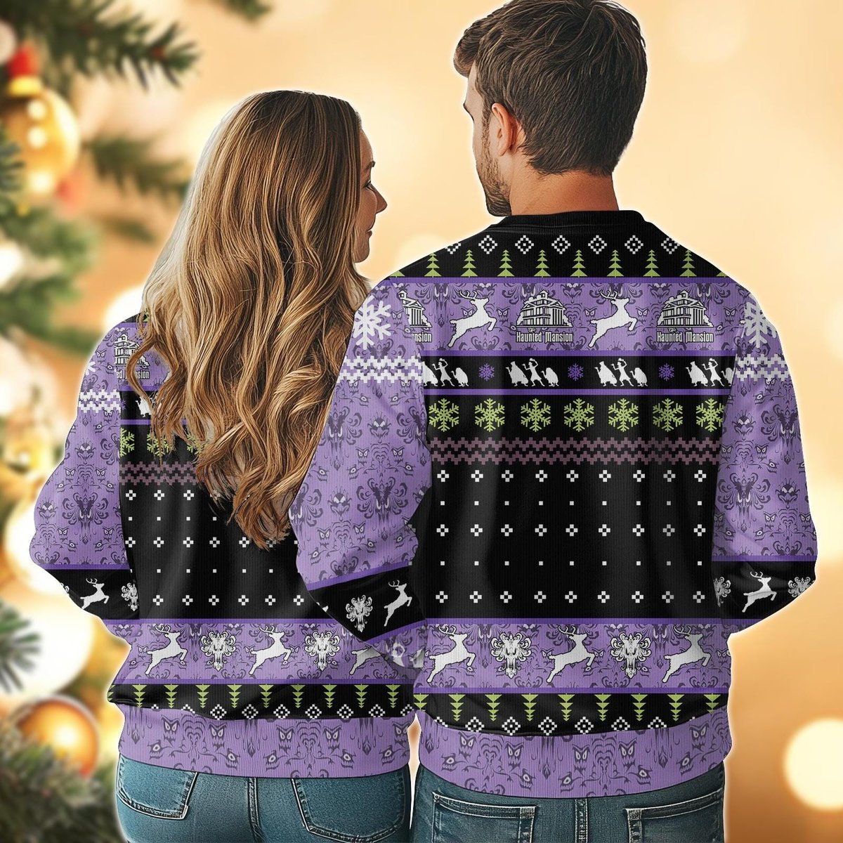 Haunted Mansion Spirits Christmas Purple Ugly Sweater Holiday Ghosts & Gifts Knit Jumper