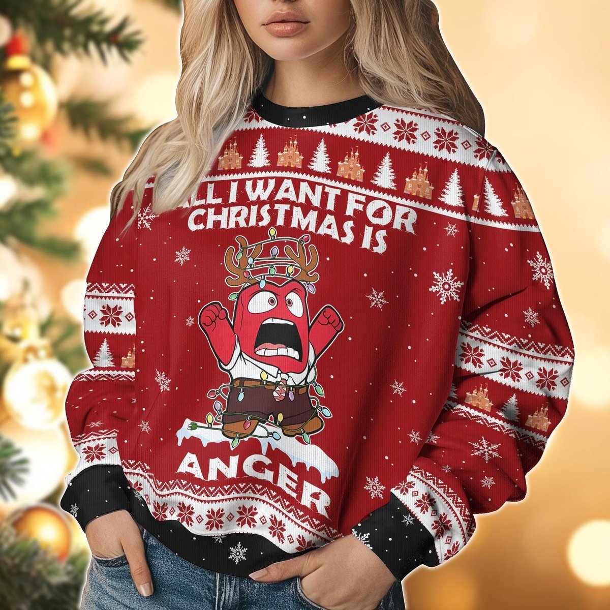 Inside Out Anger Christmas Red Ugly Sweater Holiday Lights & Snow Knit Jumper