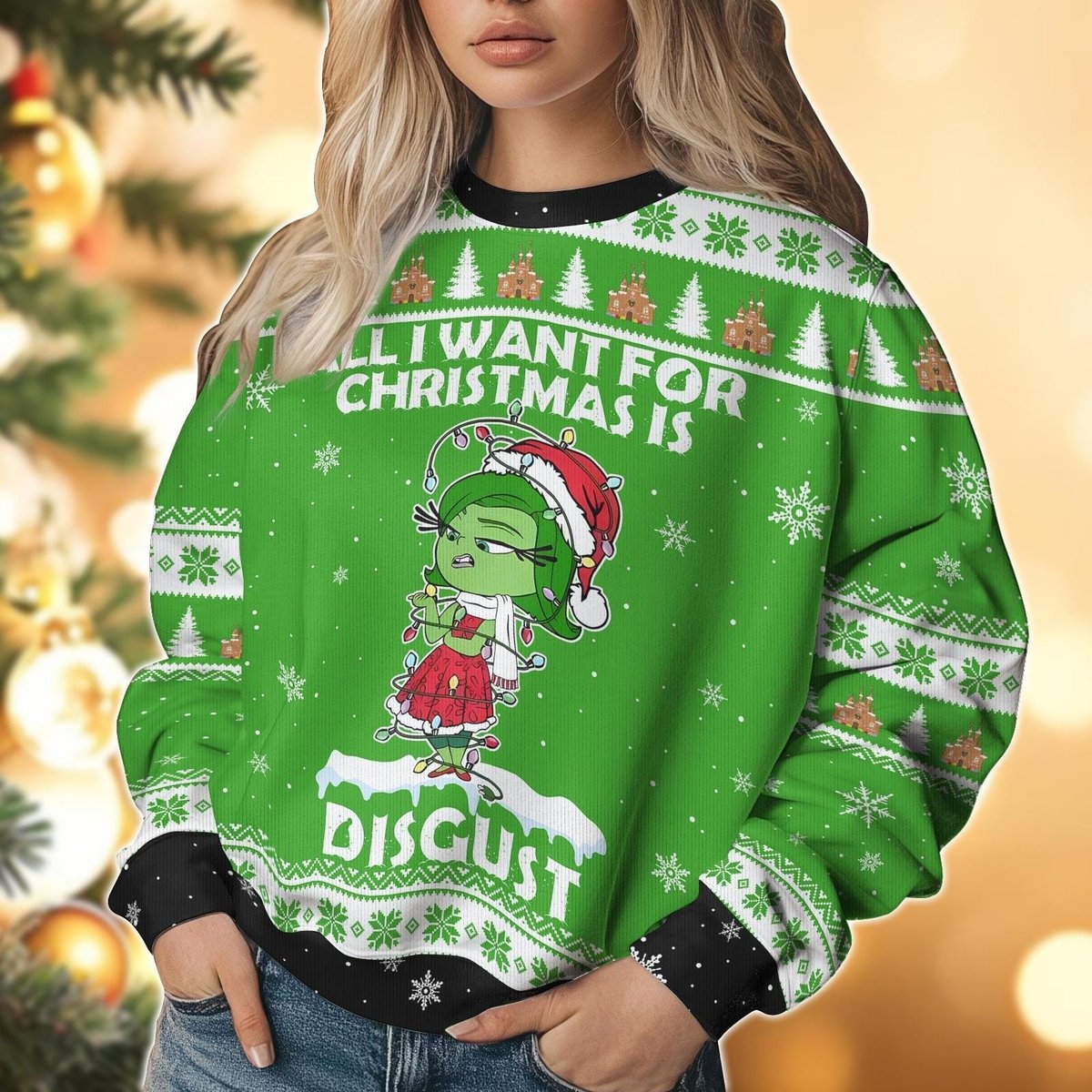 Inside Out Disgust Christmas Green Ugly Sweater Holiday Lights Character Knit Jumper