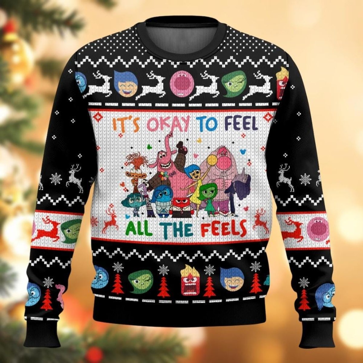 Inside Out Christmas Black Ugly Sweater Pixar Characters “It’s Okay to Feel” Holiday Knit Jumper