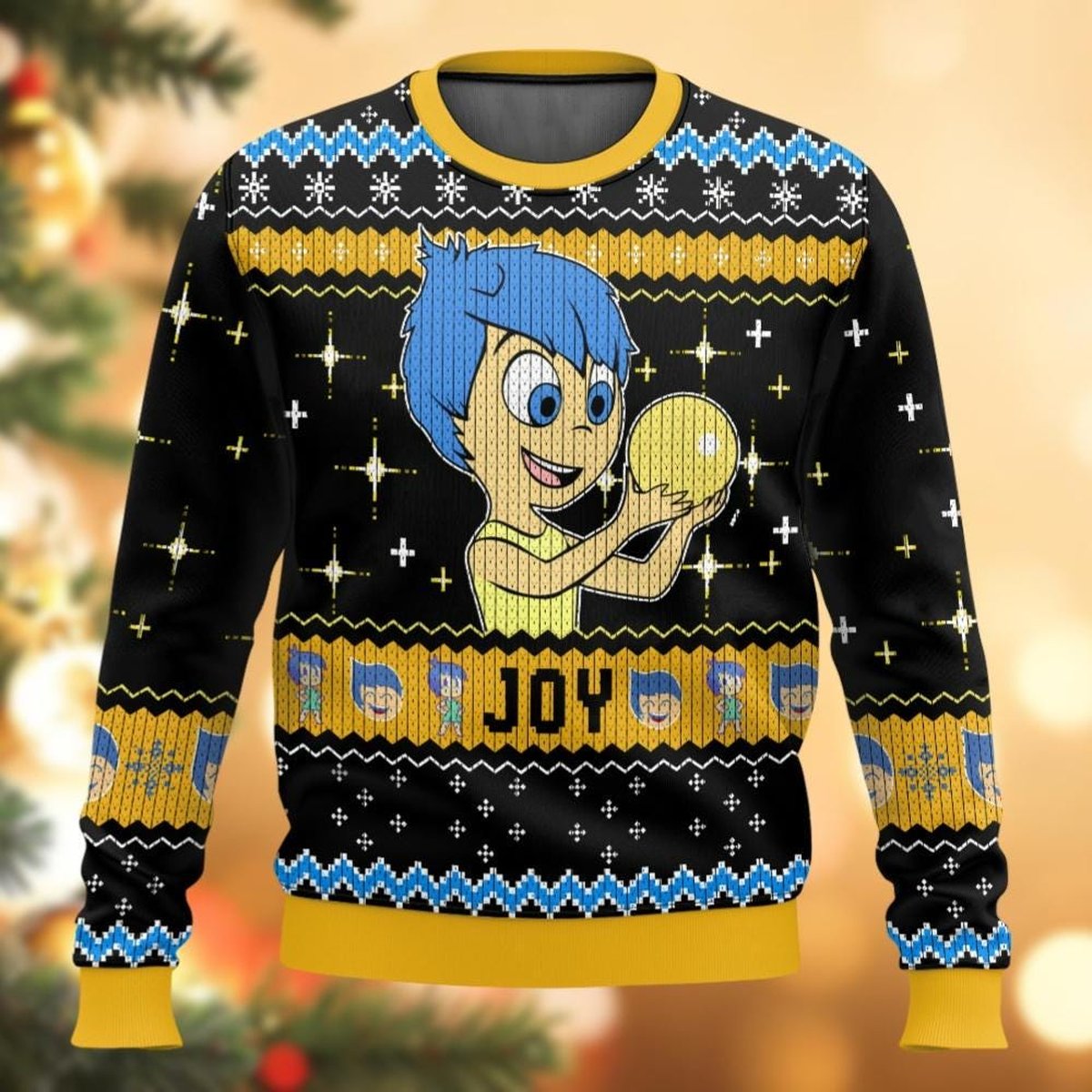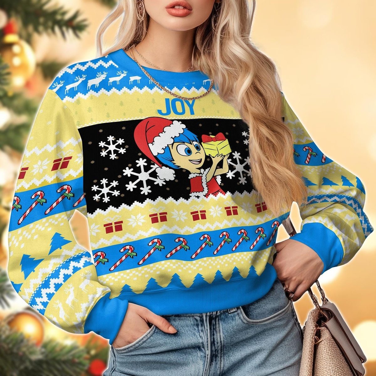 Joy Inside Out Christmas Blue Ugly Sweater Cartoon Character Gift Holiday Cozy Knit Jumper