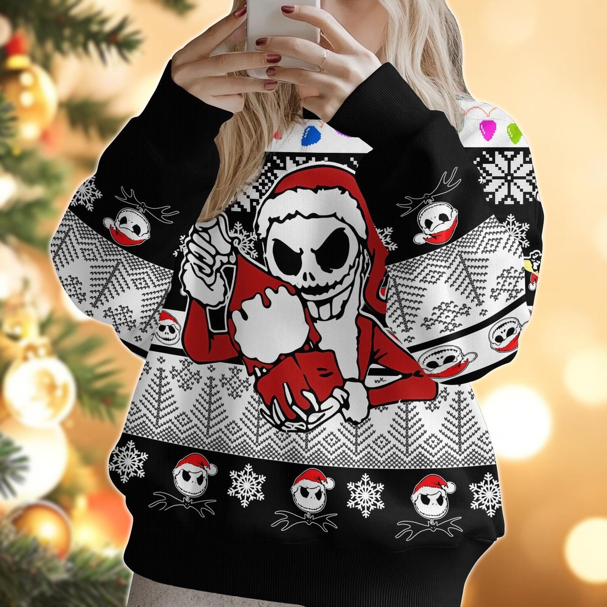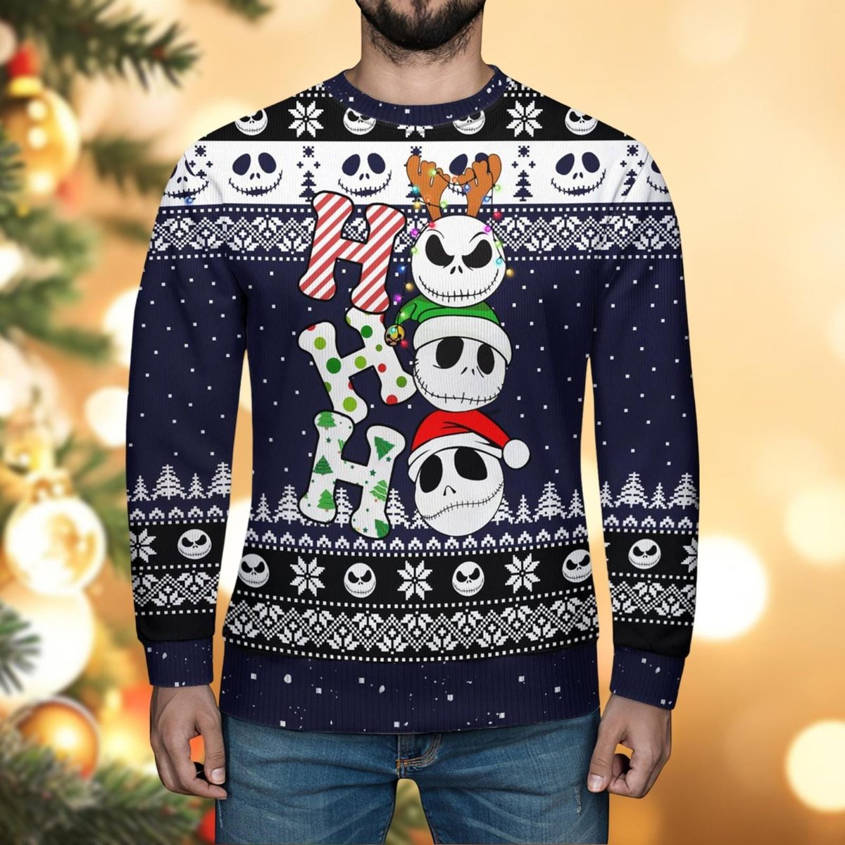 Jack Skellington Ho Ho Ho Custom Name Ugly Christmas Sweater Black Holiday Gift