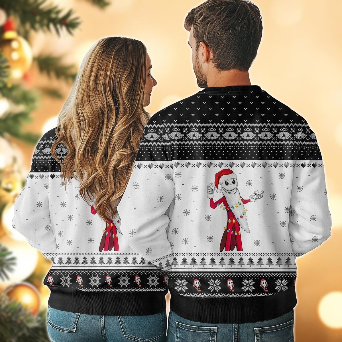 Jack Skellington Santa Lights Black Ugly Christmas Sweater Funny Holiday Pattern Knit Jumper