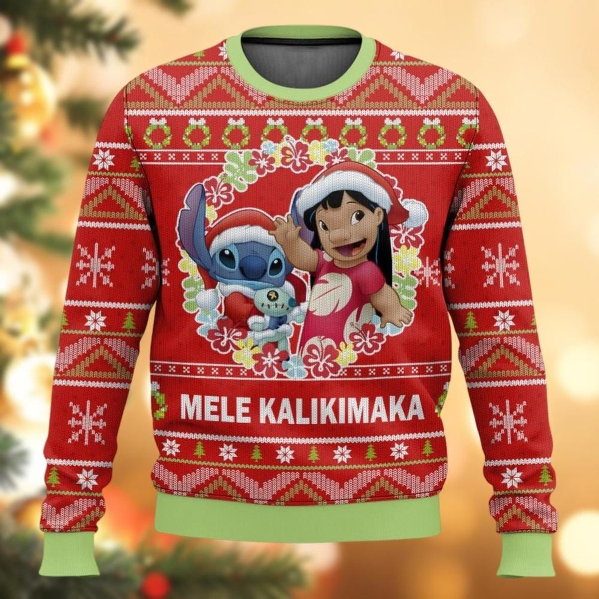 Lilo And Stitch Mele Kalikimaka Christmas Red Ugly Sweater Hawaiian Holiday Gift Knit Jumper