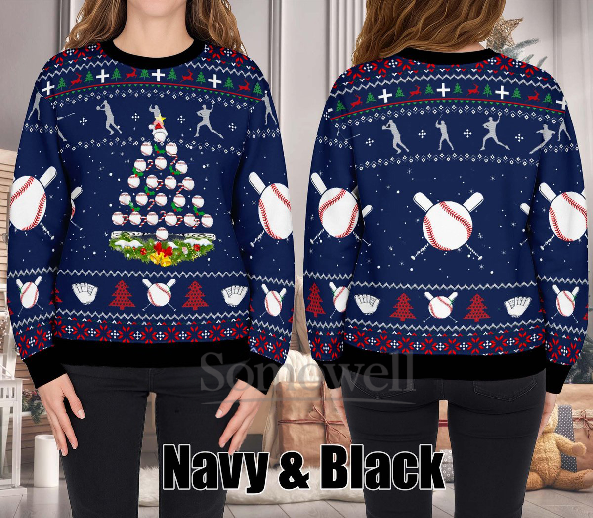 Baseball Tree Ugly Christmas Sweater Sports Holiday Knit Jumper