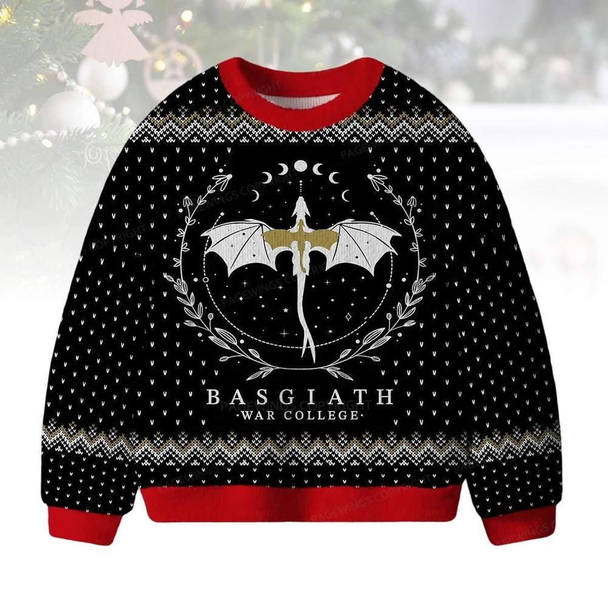 Basgiath War College Dragon Fantasy Ugly Christmas Sweater Black Red Holiday Knit Jumper