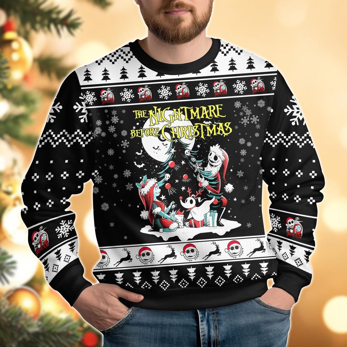 Nightmare Before Christmas Moon Scene Black Ugly Christmas Sweater Couple Holiday Gift