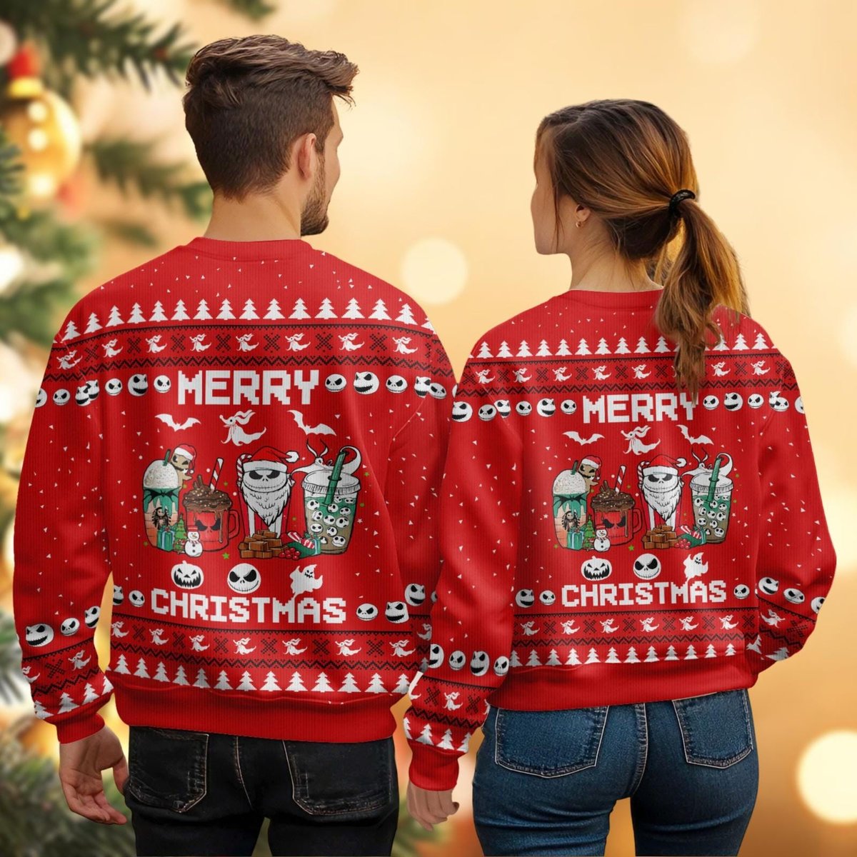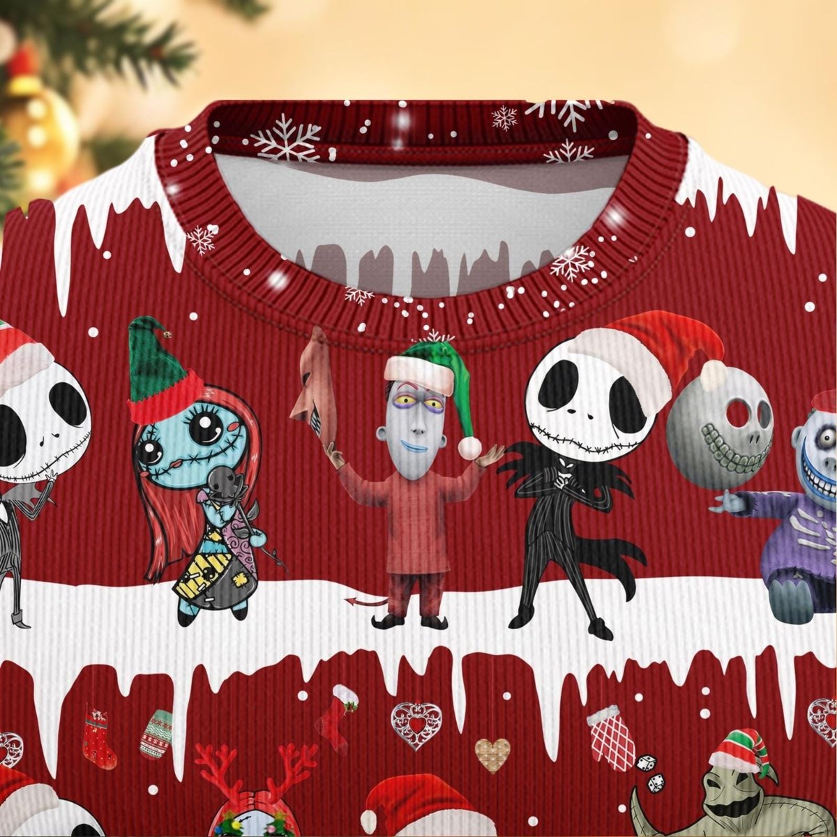 Nightmare Before Christmas Characters Red Ugly Christmas Sweater Movie Holiday Knit