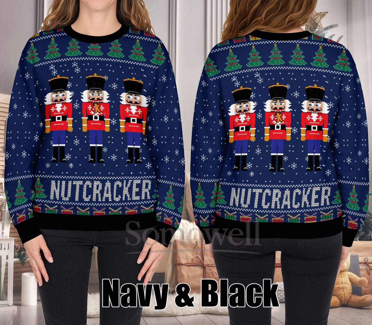 Nutcracker Christmas Forest Ugly Sweater Classic Toy Soldier Holiday Knit Jumper Gift