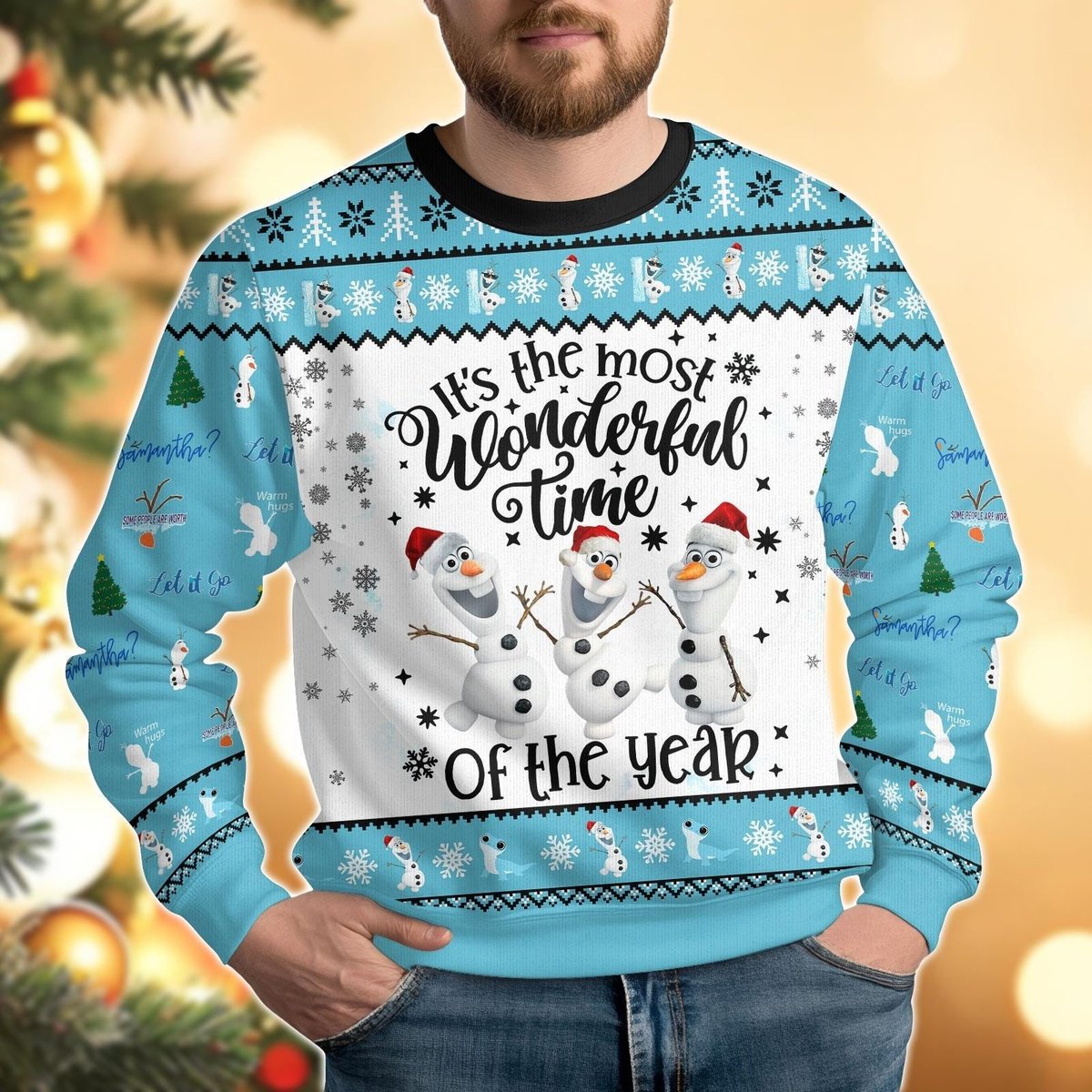Olaf The Snowman Blue Wonderful Time Ugly Christmas Sweater Funny Holiday Gift
