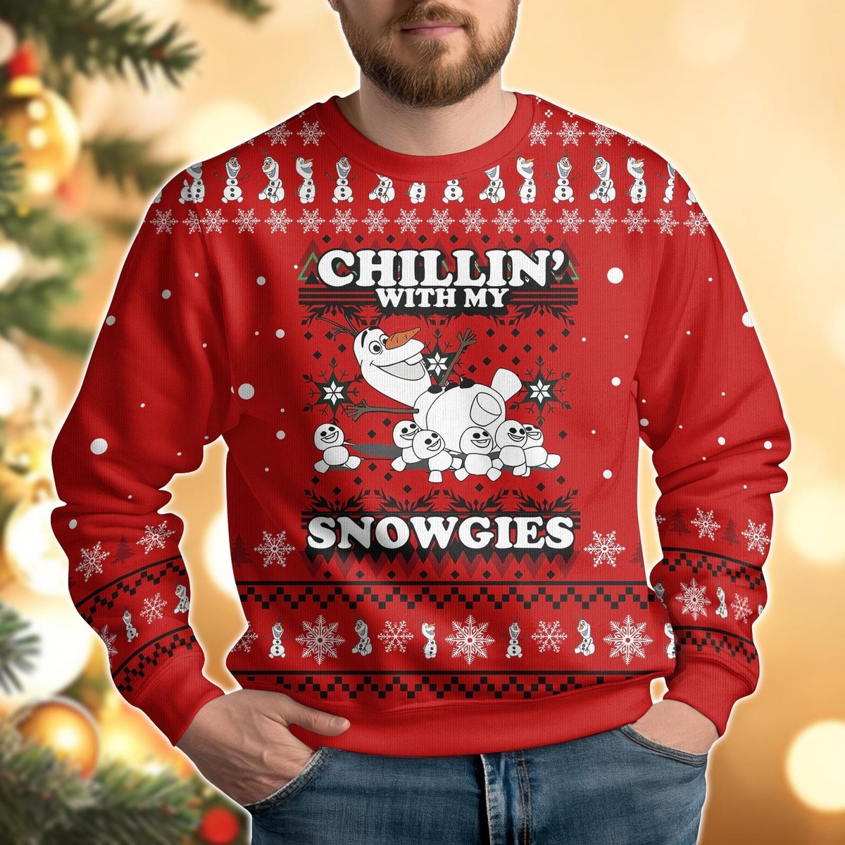 Olaf Chilling With My Snowgies Red Ugly Christmas Sweater Funny Holiday Pullover