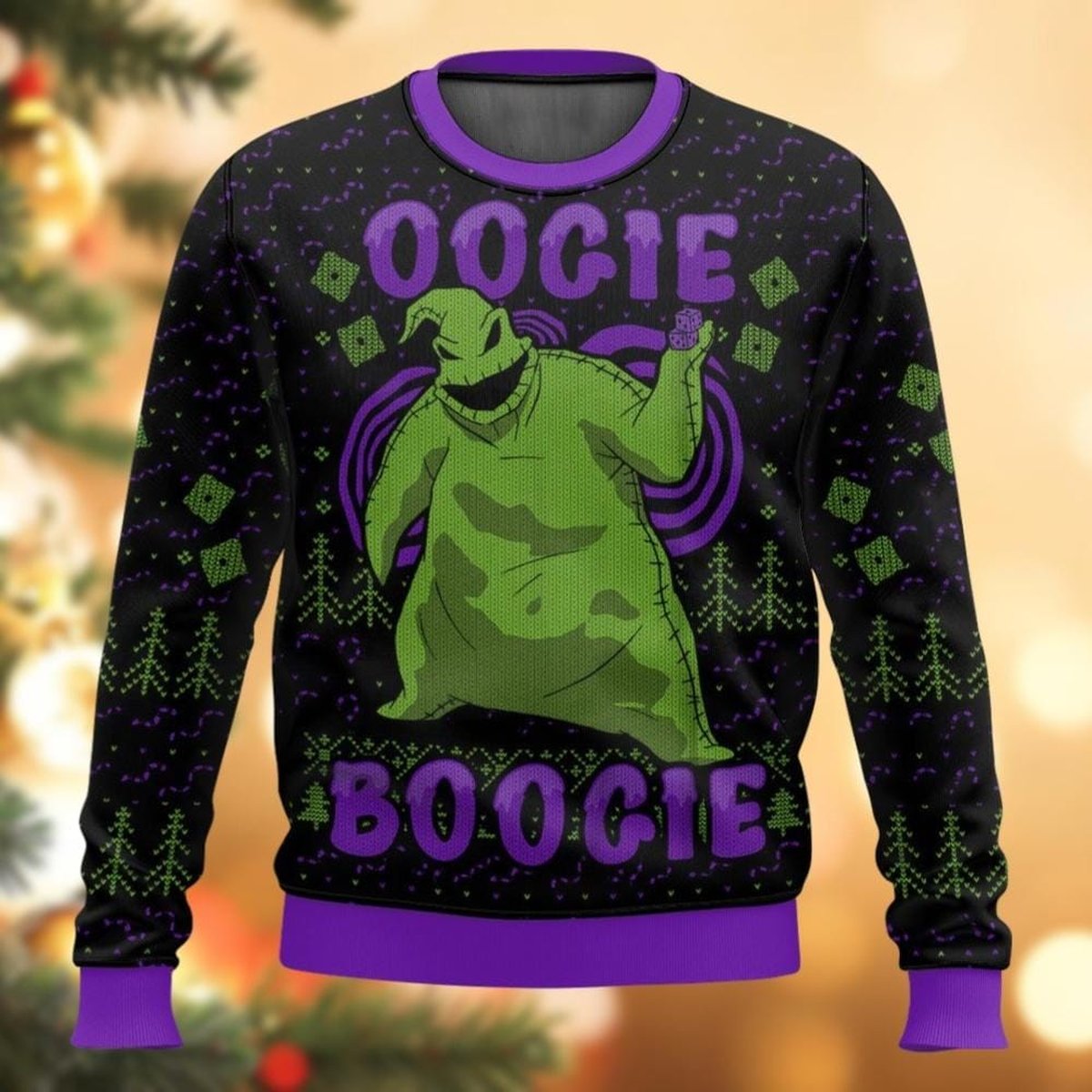 Oogie Boogie Green Black Ugly Christmas Sweater Funny Holiday Knit Pullover Gift