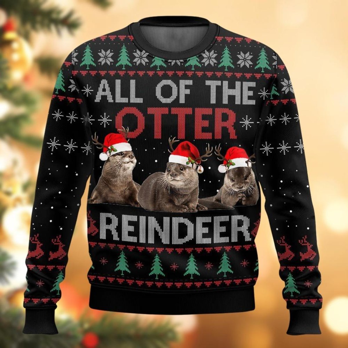 Otters Reindeer Black Ugly Christmas Sweater Funny Animal Holiday Knit Gift