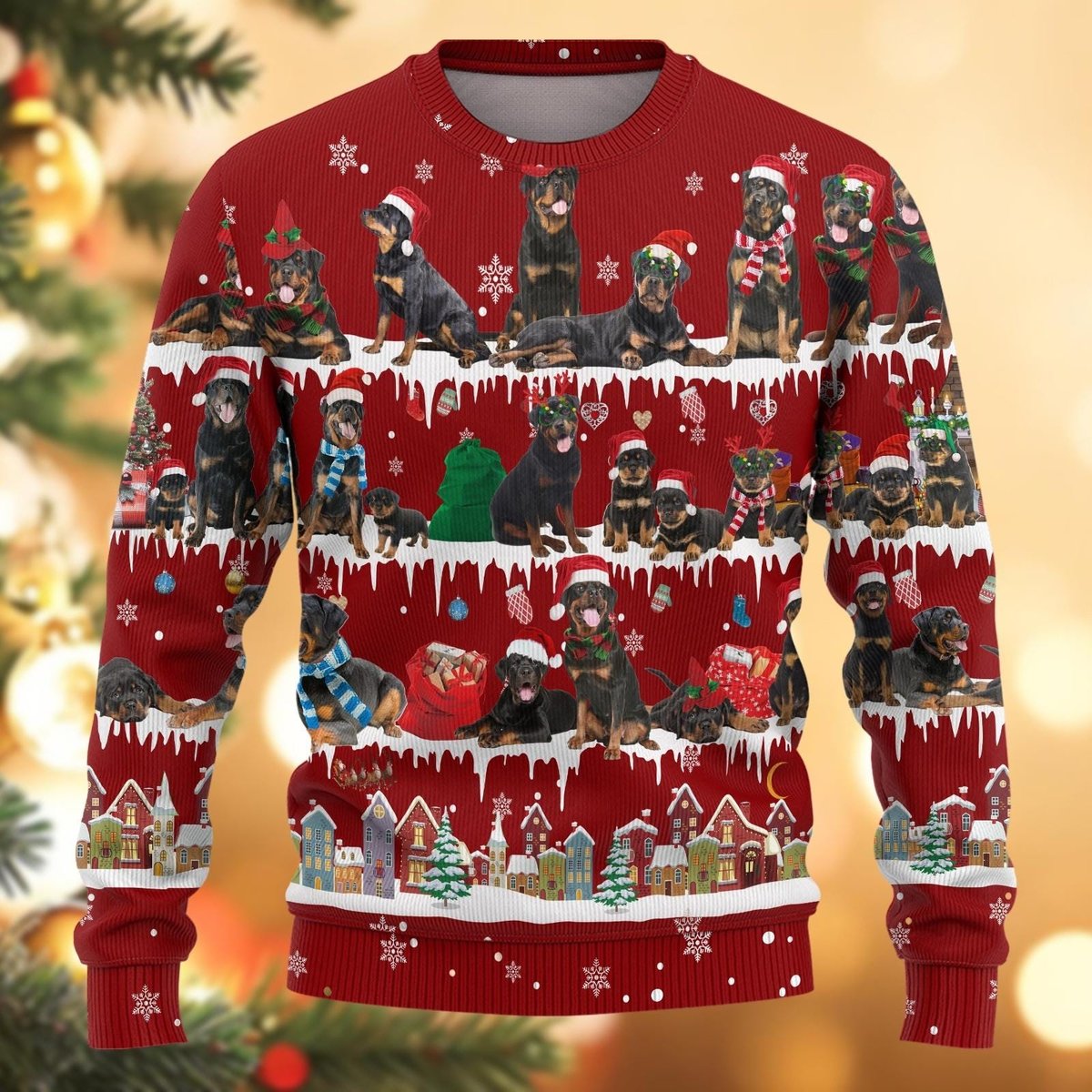 Rottweiler Dog Pattern Ugly Christmas Sweater Funny Pet Lover Holiday Gift