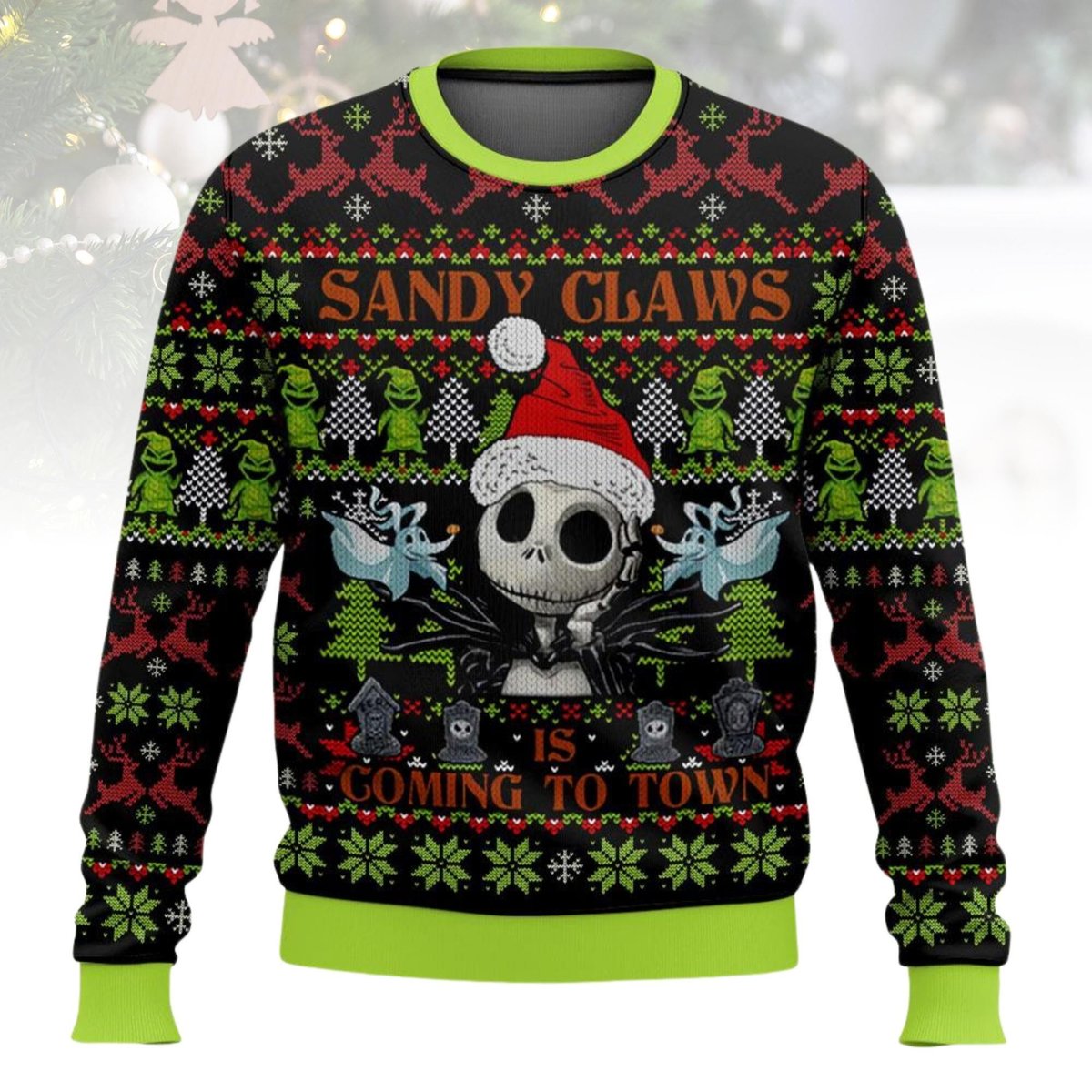 Sandy Claws Is Coming To Town Ugly Christmas Sweater Nightmare Before Christmas Movie Gift