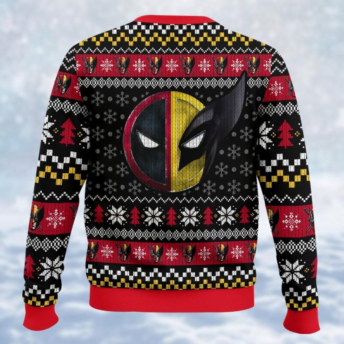 Deadpool and Wolverine Black Ugly Sweater Funny Marvel Christmas Holiday Knit Jumper